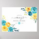 Turquoise et jaune - teal et lemon aquarelle florale affiche de bienvenue pour une baby shower avec des accents de corail avec des fleurs et feuillage aquarelle.