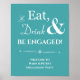 Ça va être une fête de fiançailles, alors habillez votre décor de fête avec cette affiche blanche funky sur bleu turquoise rétro Mange, Bois et Être Engagé ! Fournitures de partie correspondant disponibles.