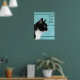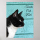 Tuxedo Kitten noir et blanc, mon chat, contre arrière - plan bleu Turquoise