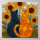 Affiche Two Cats with Sunflowers Stained Glass Pattern