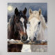 Affiche Two Horses on a Snowy Farm Under the Moon