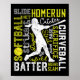 Affiche Typographie de softball Mot Art Drôle Picher Batte