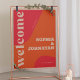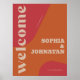 Panonceau de bienvenue de mariage moderne funky rétro des années 70, vibrant et coloré, avec des tons rouge, orange terracotta et beige. Téléchargement numérique disponible.
