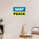 PEACE text in Ukrainian (Russian) and English. Black and white text on Ukraine Flag colors.