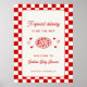 Un Panneau de Bienvenue pour une Livraison Spéciale de Baby Shower : thème italien et damier rouge et blanc pour ce panneau de baby shower adorable. Ce design rétro est parfait pour une fête sur le thème de la pizza et une célébration amusante.