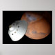 Le concept artistique d'une mission de retour d'échantillons de Mars projetée représente un engin spatial encastré dans l'aérocoque qui approche de Mars. Cet engin spatial placerait un rover récupérant des échantillons et un véhicule en montée à la surface de Mars. Le rover transporterait des échantillons précédemment mis en cache vers le véhicule ascendant, ce qui retirerait ensuite les échantillons de la planète pour se rendre en orbite avec un autre engin spatial pour emmener les échantillons vers la Terre.