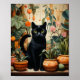 Un chat noir pose avec les plantes de maison L'IA généré art