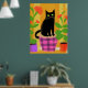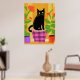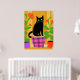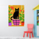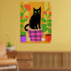 Affiche Un Chat Noir Avec Plantes Ménagères Plat Rose Viol