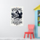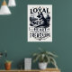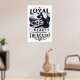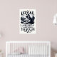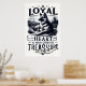 Illustration en noir et blanc d'un chien berger allemand assis sur un banc dans un parc. Le chien regarde vers le spectateur et semble être détendu et content. Les mots Un coeur loyal est votre plus grand trésor sont écrits dans une police décorative audacieuse au-dessus et au-dessous du chien.