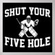 L'affiche à thème de hockey pour le gardien de hockey présente un gardien de hockey silhouette blanche avec le texte blanc qui dit : Fermez vos cinq trous.
