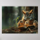 Affiche Un hibou lisant un livre à des petits poussins