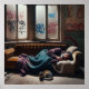 Affiche Un homme sans abri qui dort dans un immeuble aband