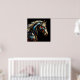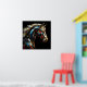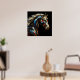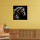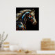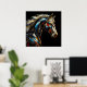 Portrait latéral d'un cheval de style abstrait. Cette oeuvre d'art présente une technique artistique de vitrail aux lignes dorées, remplie de teintes rouges, bleues, oranges, noires et argentées vives contre un arrière - plan sombre. Le résultat est une représentation majestueuse d'un étalon exsumant la splendeur royale.