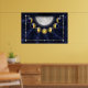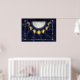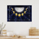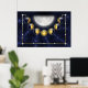 Ce design étincelant illustre le cycle lunaire en or brillant et bleu profond. Les bijoux représentant les phases de la lune courent en demi-cercle, du croissant épilé au premier trimestre, du gibbbous épilé, de la pleine lune, du gibbbous en déclin, du dernier quart, et se terminant sur un croissant en déclin. Ils sont placés sur un fond fractal comme le ciel étoilé, avec une photo de lune argentée de la NASA pour compléter la pièce.