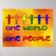 Les chiffres arc-en-ciel relient les armes et se tiennent sur les mots : "Un seul monde, un peuple" pour faire passer le message que la paix mondiale commence avec nous. Nous devons nous entendre avant d'avoir la paix.