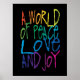 Les mots "Un monde de paix, d'amour et de joie" dans les couleurs de l'arc-en-ciel. La paix mondiale commence avec chacun de nous. Art de l'artiste Margaret Loftin Whiting.