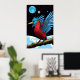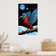 Image d'un oiseau rouge et bleu avec un bâton dans l'espace.