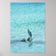 Photo minimaliste d'un héron perché sur un arbre qui n'a pas complètement submergé sous l'eau. La surface de l'eau est perturbée par le vent et les ondulations créent un fond bleu texturé. Copyright ©2018 Kimberly J Tilley.