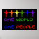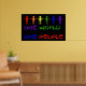 Les chiffres arc-en-ciel relient les armes et se tiennent sur les mots : "Un seul monde, un peuple" pour faire passer le message que la paix mondiale commence avec nous. Nous devons nous entendre avant d'avoir la paix.