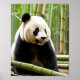 Une description détaillée d'un panda majestueux dans son habitat naturel, entouré de forêts luxuriantes de bambou.