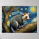 Un possum sur une branche d'arbre dans la Starry Night AI généré de l'art