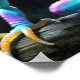 Un reptile aux couleurs vives, mêlant des teintes vibrantes, dont le vert, le bleu, le jaune et le rose, est perché sur un morceau de bois, se détachant contre un arrière - plan sombre et flou. Les écailles détaillées et les yeux saisissants rehaussent l'apparence captivante de la créature.