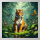 Affiche Un tigre unique assis dans la jungle avec des oise