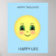 Des pensées joyeuses et un visage ensoleillé et heureux apporte la vie heureuse sur l'affiche jaune. Quelque chose à avoir toujours en tête !