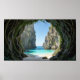 Cette image représente une crique secrète accessible uniquement par une grotte marine étroite recouverte de vignes. L'eau à l'intérieur est d'un turquoise incroyablement brillant. Des falaises déchiquetées encadrent la plage immaculée dans une peinture matte numérique très détaillée avec des influences Art nouveau.