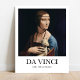 Cette affiche présente une reproduction de haute qualité du portrait de Léonard de Vinci datant d’environ 1490, intitulé Dame à l’Ermine. Le tableau montre une jeune femme du nom de Cecilia Gallerani, qui était la maîtresse de Ludovico Sforza, le duc de Milan. Elle tient une hermine blanche, symbole de pureté et d’élégance, ainsi que l’emblème du duc. Le tableau est un chef-d’oeuvre de l’art de la Renaissance, qui montre l’habileté de Léonard à saisir la personnalité et l’expression de la soeur, ainsi que son utilisation de la lumière et de l’ombre. Le tableau est l'un des quatre portraits de femmes peintes par Leonardo, et il est actuellement exposé au Musée Czartoryski de Cracovie, en Pologne.