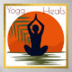 Une fille faisant du yoga avec l'arrière - plan couché de soleil Poster avec légende yoga guérit. C'est une belle affiche pour éclairer votre salle de méditation. Disponible aussi pour l'impression physique et le téléchargement instantané.