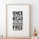 Une fois que vous apprendrez à lire, vous serez toujours libre, citant Frederick Douglass. Citation inspirante, Don d'amant du livre, Cadeau de l'enseignant, Décor de bureau, Peinture murale en salle de classe.