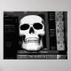Image en noir et blanc d'un crâne assis à sa place sur la bibliothèque