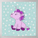 Unicorne rose mignonne avec Stars Girl Nursery Poster. L'arrière - plan est turquoise avec des étoiles blanches. Idéal pour la chambre maternelle, surtout pour une petite fille.