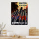 This vintage war poster declares, "United We Are Strong, United Will Win". It features the the flags of the Allied Nations during World War Two, attached to cannons firing into the sky. This design would be great for anyone that loves history or WW2. Celebrate American and World History with this digitally restored vintage war poster product.