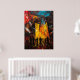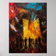 Entrez dans une vision enflammée du chaos urbain avec cette oeuvre expressionniste contemporaine. Les coups de pinceau explosifs et les couleurs intenses créent un paysage urbain englouti dans l'énergie, comme des figures ombragées se tiennent devant des bâtiments imposants consommés par la lumière et le mouvement. Cette pièce capture l'émotion brute de la vie moderne, mêlant abstraction et structure dans une symphonie visuelle dramatique. Un parfait exemple pour les amateurs d'expressionnisme audacieux, de paysages urbains dystopiques et d'esthétique avant-gardiste.