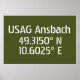 Coordonnées de la carte de latitude et longitude pour USAG Ansbach / Katterbach Kaserne en Allemagne police blanche de style Tablier sur arrière - plan vert de l'armée.
