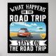 Ce drôle de plan de route de vêtements de vacances assortis lit ce qui se passe sur le voyage sur la route reste sur le voyage. Le design est doté d'une aquarelle.