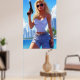 She may have traded flip-flops for firepower, but the sun still shines on her terms. With windswept hair, mirrored shades, and a gaze that says "I don't miss twice," she's the enfant of heat Miami wasn't ready for. Parfaite blend of summer glam and action-flick grit - this blonde bombshell is done playing nice.