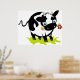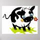 Une adorable vache noire et blanche avec une fleur en bouche. Ce design semble vraiment efficace sur ces Poster