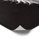 Charmante petite vache vêtue d'un casquette noir orné de fleurs roses, dressée contre un arrière - plan noir inspirant la gentillesse et l'élégance.