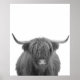 Affiche Vache des Highlands Écosse Rustique Noir Blanc