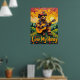 Ce magnifique tableau représente un ours habillé comme pompier, portant des lunettes de soleil et un casque, montant une guitare acoustique, assis sur un canon herbacé dominant une vallée pittoresque sous un coucher de soleil chaud et coloré. Parmi les fleurs sauvages. Les coups de pinceau épais et texturés rehaussent la nature capricieuse et douce de la scène, avec "Love My Honey" en évidence.