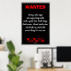 Affiche Vampire Recherché Funny Gothique Art Imprimer