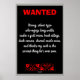 Certaines filles savent exactement ce qu'elles veulent. Et cette impression d'art gothique donne un nouveau sens à "Vampire Hunter" ; D Big bold red text déclare "Recherché" tandis que toutes les exigences dont une fille a besoin pour le petit ami mort ultime est écrit en blanc pour lire ; Forte, silencieuse type qui aime les longues promenades sous une pleine lune, les allées arrière, les coins sombres. ruines de château lamentables, et pense que mon cou est la chose la plus sexy qu'il jamais vu. ©Tabz Jones tous droits réservés.