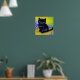 Poster avec un chat noir dans le style de Vincent van Gogh! Cette chatte aux yeux bleus s'assied adorablement avec des fleurs violettes contre un mur vert et une table jaune. Un cadeau merveilleux pour les amoureux de les chats et les collectionneurs d'art hollandais !