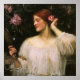 Vanity (1910) de JW Waterhouse est un portrait vintage d'art victorien pré-Raphaelite avec une belle dame. Une vaine jeune femme avec une fleur rose dans les cheveux admirant sa beauté dans un miroir. À propos de l'artiste : John William Waterhouse (1849-1917) était un peintre préraphaélite anglais le plus célèbre pour ses peintures de personnages féminins de la mythologie et de la littérature grecques anciennes.