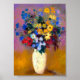 Poster représentant la peinture d’Odilon Redon Vase blanc aux fleurs (1916). Un bel arrangement de fleurs bleues, rouges, blanches et violettes. Un cadeau sincère pour les collectionneurs d'art français !