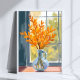 Affiche d'art en aquarelle de vase de fleurs d'automne sur appui de fenêtre