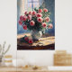 Affiche Vase de roses roses par fenêtre - Art impressionni